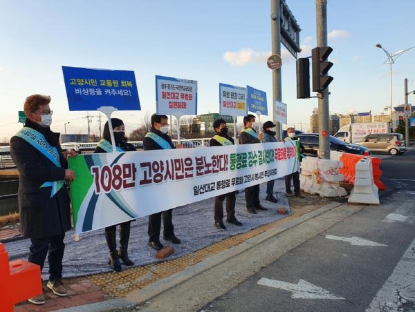 일산대교 통행료 무료화 고양시 범시민 추진위원회 임원들 거리로 나섰다.