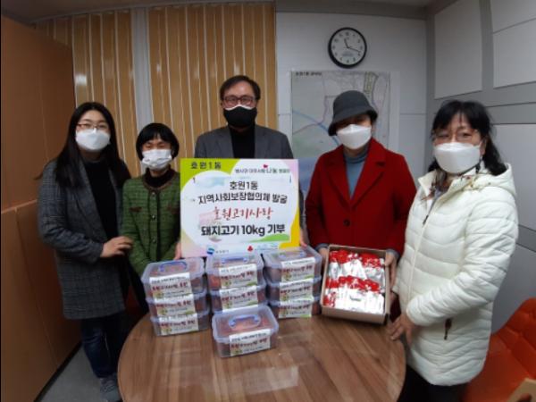 이번 나눔은 관내 정육점 호원고기사랑에서 후원해 줬으며, 이남정 동지역사회보장협의체 위원의 자원 발굴을 통해 이뤄졌다.