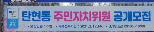 고양시 일산서구 탄현동(동장 박상원)은 지난 3월 2일 탄현동 주민자치위원회를 이끌어 갈 역량 있고 지역봉사에 앞장서는 신규 위원을 공개모집한다고 밝혔다.