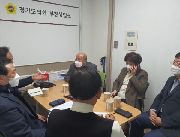 김명원 의원과 이선구 의원은 지난 3일 경기도의회 부천상담소에서 부천시 노인복지과, 대한노인회 부천시 소사지회장(이신행), 은행나무 경로당 회장 및 관계자 등이 참석한 가운데, 올해 안에 경로당 신축 및 노인회 건물의 리모델링이 신속히 추진될 수 있도록 만전을 기해 줄 것을 당부했다.