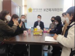 경기도의회 최종현 의원은 5일, 경기도의회 보건복지위원실에서 신동진 경기도농아인협회장, 김문정 경기도농아인협회 안산지회장, 길경희 경기도농아인협회 안성지회장, 경기도 장애인복지과 관계자 등과 장애인 이동지원 사업 관련 정담회를 가졌다.