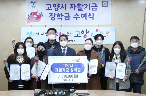 이번 장학금은 ‘고양시 자활기금 설치 및 운용 조례’에 따라 자활기금으로 발생된 이자수입으로 마련됐으며 성적이 우수한 대학교 재학생 10명을 선발해 각 100만원씩 전달했다.