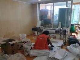 봉사단은 지난 2월 백석읍에 거주하는 장애인 모자가구를 방문해 집안 내부의 오염물 청소를 비롯한 도배ㆍ장판 교체, 문과 문틀 도색작업, 소독작업을 진행하고 이불세트, KF94 마스크, 마스크 스트랩, 자원봉사자들이 손수 만든 공기청정기, 도마, 고추장 등을 전달했다.