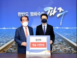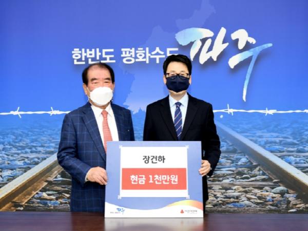 파주시는 지난 5일 아너소사이어티 회원인 장건하 기부자가 경제적 어려움으로 힘든 저소득층을 위해 써달라며 이웃돕기 성금 1천만 원을 전달했다고 밝혔다.