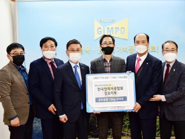 김포시양곡가공협회는 김포금쌀을 가공하는 관내 도정업체 14개소가 연합된 협회로 매년 관내 제일 큰 어르신인 김포시노인회에 김포금쌀을 기부해 왔으며 특히 올해는 코로나19로 인하여 300여개의 관내 노인정에서 급식이 제한되어 식사해결이 어려운 노인 어르신들을 위하여 회원들의 마음을 모아 14백만 원 상당의 쌀을 기부하는 행사를 가졌다.