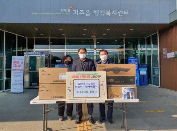 파주시 파주읍이 지난 5일 파주읍 새마을지도자협의회와 함께 복지사각지대 취약계층가정 아동의 교육을 위해 컴퓨터를 전달했다고 밝혔다.