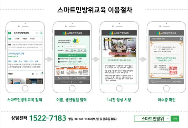 그동안 민방위 대원 1~4년 차는 4시간의 집합교육을, 5년 차 이상은 1시간의 온라인교육 또는 비상소집을 받아왔다. 올해는 집합교육 시 발생할 수 있는 감염병 확산을 방지하기 위해, 모든 민방위 대원은 1시간의 스마트교육을 받으면 된다.