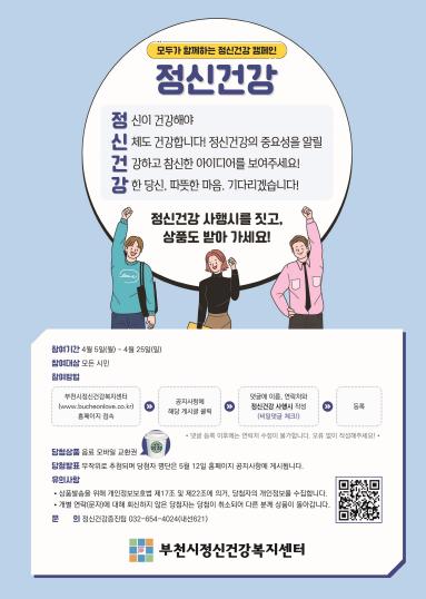 부천시와 부천시정신건강복지센터는 4월 5일부터 4월 25일까지 정신건강 사행시 캠페인을 개최한다.