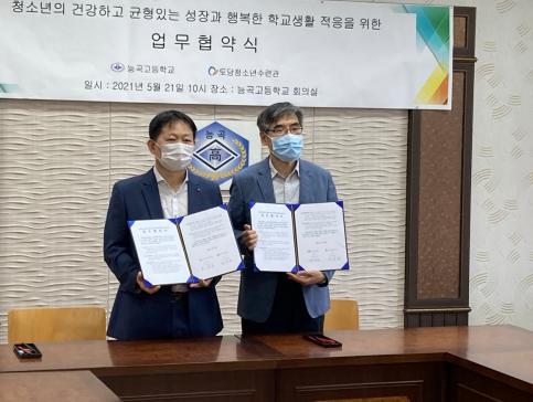 고양시청소년재단 토당청소년수련관은 5월 21일 덕양구 토당동 소재능곡고등학교와 능곡고등학교 내 지필평가본부 사무실에서 청소년들의 건강하고 균형있는 성장지원을 도모하기 위해 업무협약을 체결했다고 밝혔다.