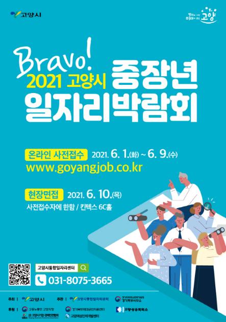 고양시는 오는 6월 1일부터 10일까지 ‘Bravo! 2021 고양시 중장년일자리박람회’를 개최한다.