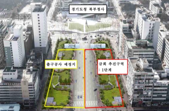 2017년 5월부터 추진 중인 '경기도청 북부청사 앞 경관광장 지하주차장 건설사업(1단계)'은 1단계와 2단계로 추진되며, 이번에는 서측 1단계 공사로 주차면수 116면을 조성을 위하여 총사업비 216억 원을 투입했다. 현재 공정률 64%로 2021년 12월 말 공사 준공을 목표로 원활하게 추진되고 있다.
