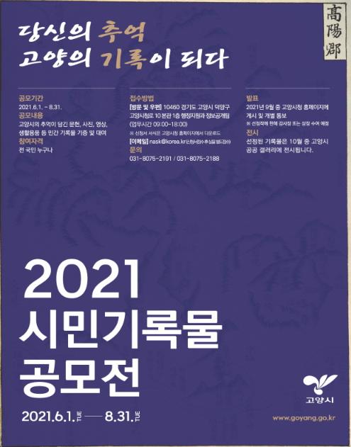 고양시는 시 승격 30주년을 기념하고 시민과 함께 고양시의 추억과 향수를 공유하기 위해 내달 1일부터 ‘2021 시민기록물 공모전’을 개최한다.
