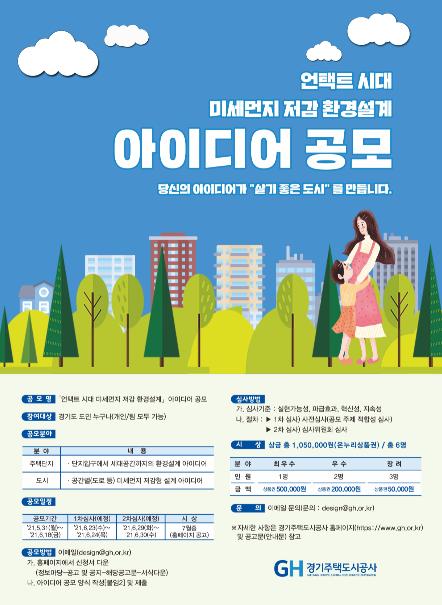 이번 공모는 GH형 미세먼지 저감 환경설계 발굴을 통하여, ‘마음껏 숨 쉬고 싶은 살기 좋은 도시’를 구현하기 위해 기획됐다.