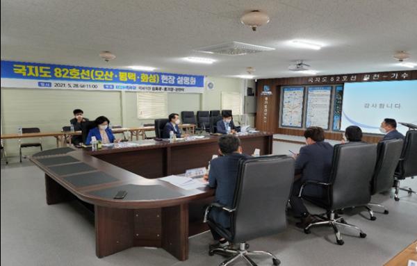 간담회에서 교통서비스수준 F등급인 도로를 확장하여 주민불편을 해소하기위해 2019. 4월 착공 2026. 3월 준공예정으로 추진중인 국지도 82호선 갈천~가수 도로공사를 조기개통을 위해서는 보상비와 공사비 등 부족예산 편성의 시급함을 논의하였다.