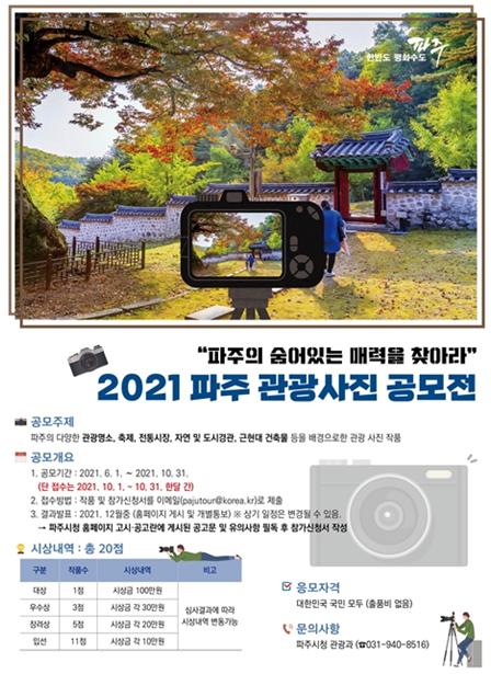 파주시가 다양한 파주 관광지의 새로운 매력을 발굴하기 위해 ‘2021 파주 관광사진 공모전’을 개최한다.