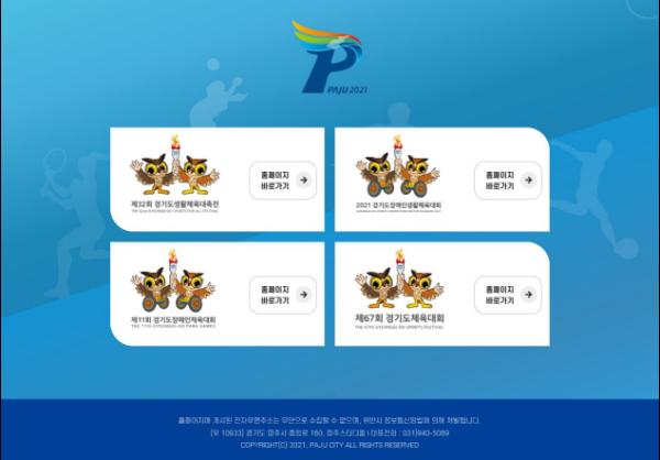 파주시가 2021년 경기도종합체육대회 4개 대회 홈페이지를 열었다.