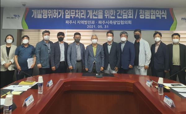 파주시는 지난 5월 31일 파주시 측량업협의회와 개발행위허가 업무개선 간담회 및 청렴 협약식을 개최했다.