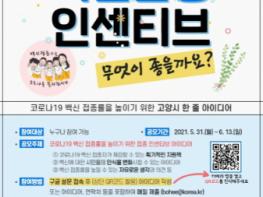 공모 주제는 ▲코로나19 백신 접종자가 체감할 수 있는 획기적 지원책 ▲백신에 대한 시민들의 인식을 변화시킬 수 있는 아이디어 ▲백신 접종률을 높일 수 있는 자유로운 생각, 의견 등이다. 간단히 한 줄로만 작성해도 되며 누구나 참여할 수 있다.