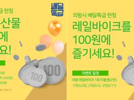 4일에는 의왕시민을 위한 레일바이크 1회 이용권(2인·총 40매) 100원딜 2차 이벤트를 진행한다. 배달특급 회원가입 후 이벤트 쿠폰을 발급받아 100원딜 상품을 구매하면, 모바일이용권이 발송된다.