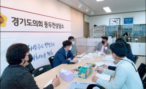 경기도의회 유광혁 의원(더불어민주당, 동두천1)은 2일 경기도 시장상권진흥원 곽규근 본부장 및 동두천시 상권진흥센터 김도형 센터장 외 관계자 3명과 함께 생연동 원도심 상권진흥구역 지원 사업을 위해 정담회를 가졌다.