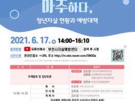 각 주제 발표는 △청년자살 현황 및 정책(순천향대학교 천안병원 정신건강의학과 이화영 교수) △포스트 코로나, 사회적 불안에 떠밀린 청년들(청춘상담소 ‘좀 놀아본 언니들’ 장재열 대표) △청년자살의 예방, 청년을 사회와 연결하는 일부터(서울시청년활동지원센터 김수빈 사업지원실장) 순서로 진행된다.