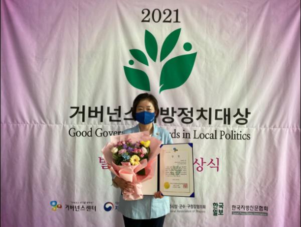 문경희 경기도의회 부의장(더민주, 남양주2)은 6월 2일 2021 제3회 거버넌스 지방정치대상 분권자치 강화 분야 ‘최우수상’을 수상했다.