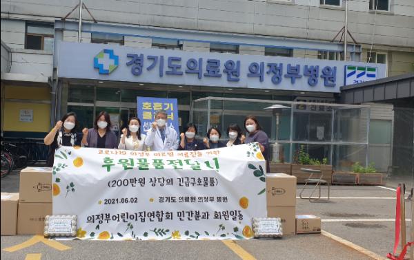 의정부시어린이집연합회 민간분과는 6월 2일 코로나19 확산 방지와 예방에 헌신하고 있는 경기도의료원 의정부병원 의료진들을 위한 기부물품을 전달했다.