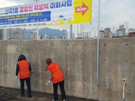 의정부시 신곡1동 주민자치위원회는 6월 1일부터 신곡1동 중랑천 제방 벽화 조성 작업을 시작했다. 이번 벽화조성 활동은 의정부시에서 실시하는 ‘마을공동체 주민제안 공모사업’의 일환으로, 신곡1동 통장협의회의 협조와 동참하에 6월 한 달간 중랑천 제방 벽화 조성 및 주변 환경 미화 활동을 할 예정이다.