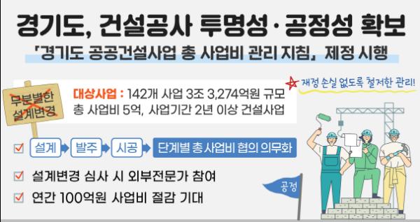 올 하반기부터 경기도 공공건설사업에서는 원칙 없는 설계변경 등으로 사업비가 과도하게 증가하는 불합리한 관행이 근절될 전망이다.