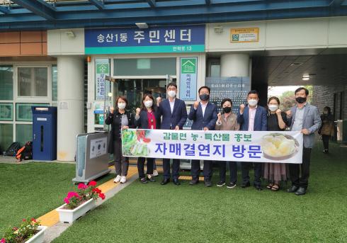 의정부시 송산1동는 6월 3일 자매결연지 괴산군 감물면의 농산물 판매 홍보 및 도농 교류를 위해 송산1동 주민센터에서 간담회를 개최하였다.