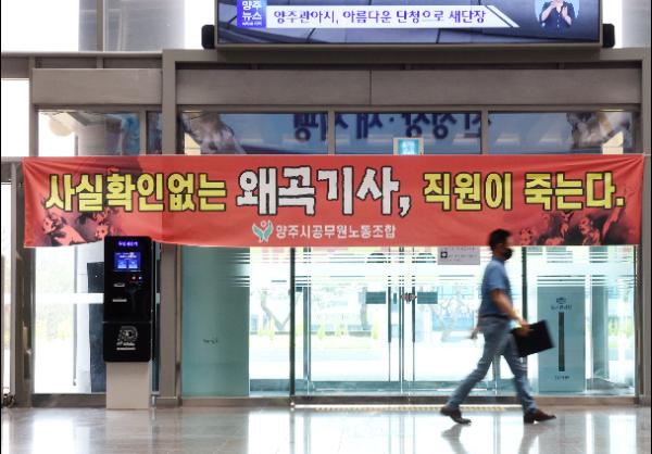 공무원노조는 “객관적이고 공정한 보도로 시민의 알권리를 충족시키고 시민들의 눈과 귀가 되어야 할 언론은 직업윤리를 잊고 언론의 품격을 잃는 왜곡·과장보도에 탐닉하며 저널리즘의 붕괴를 재촉하고 있다”며 “이번 사안은 양심 잃은 펜대를 남용해 양주시 공직자의 명예를 훼손하고 시 이미지를 실추시킨 일부 언론의 방종과 부실한 사건취재로 우리 시가 전 국민들로 하여금 주먹구구식 무능 행정, 독선적 시정운영을 하고 있는 것처럼 포장돼 전 공무원들의 명예와 자긍심이 훼손됨은 물론 사기를 저하시키고 있다”고 강조했다.