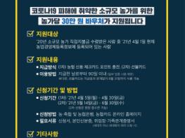 경기도는 농림축산식품부의 ‘소규모농가 한시 경영지원 바우처 사업 신청기간이 당초 5월 말에서 오는 30일까지로 연장된다고 9일 밝혔다.
