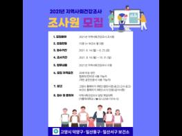 고양시 일산동구보건소는 오는 14일부터 25일까지 ‘2021년 지역사회건강조사’를 수행할 조사원 5명을 모집한다.