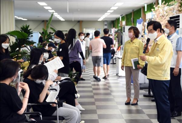 안병용 의정부시장은 7월 20일 코로나19 예방접종센터를 방문해 화이자 예방접종 대상인 고3 수험생들과 상담하고 고충을 들었다.