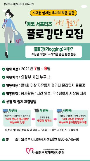 의정부시자원봉사센터는 올 7월부터‘지구를 살리는 우리의 작은 습관 – 에코 서포터즈 Hi! 플로깅’을 진행하고 있다.