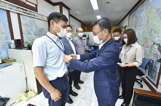 김포시는 18일 사우동 소재 중개사무소에서 부동산 중개업소 QR코드 스티커 부착 및 명찰 수여식을 가졌다.