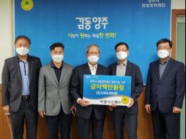 이날 장학금을 전달한 심범수 대표는 “양주의 미래를 이끌어 나갈 인재 육성을 위해 장학금을 기탁하게 됐다”며 “앞으로도 꾸준히 지역현안에 관심을 가지고 기부활동에 동참할 수 있도록 노력하겠다”고 말했다.