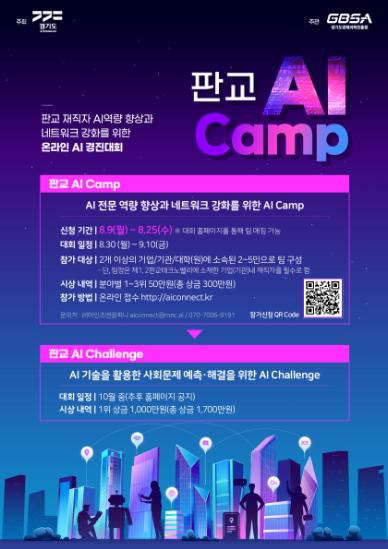 임문영 경기도 미래성장정책관은 “우수한 인공지능 기업이 모여 있는 판교테크노밸리를 중심으로 ‘AI Camp’와 ‘AI Challenge’ 경진대회를 진행해 판교와 국내외 인공지능 네트워킹 장을 형성할 예정”이라며 “이를 통해 국내 인공지능 분야의 발전을 도모하겠다”고 말했다.
