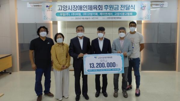 고양시는 지난 8일 고양시광고협회, 우일(주), ㈜미림, (주)고양기획, 제이엔케이 5개 소공인 기업이 고양시장애인체육회에 1,320만 원을 후원했다고 밝혔다.