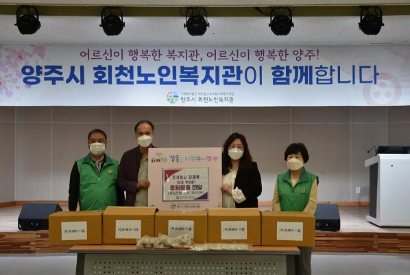 양주시 회천노인복지관에 메밀전병과 만두 100인분을 전달했다.