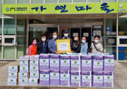 8일 부천시의 봉사단체 이웃사랑회(회장 김영화)가 김포시에 있는 중증장애인거주시설 가연마을에 100만 원 상당의 휴지, 치약, 칫솔 등 생활필수품과 추석 떡을 전달했다.