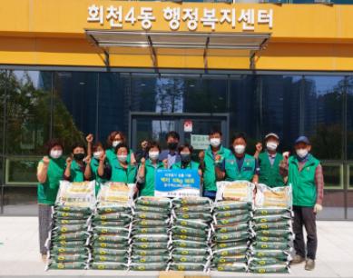 양주시 회천4동은 지난 9일 새마을지도자회에서 행정복지센터를 방문해 백미(10kg) 60포(환가액 200만원)를 전달했다고 밝혔다.