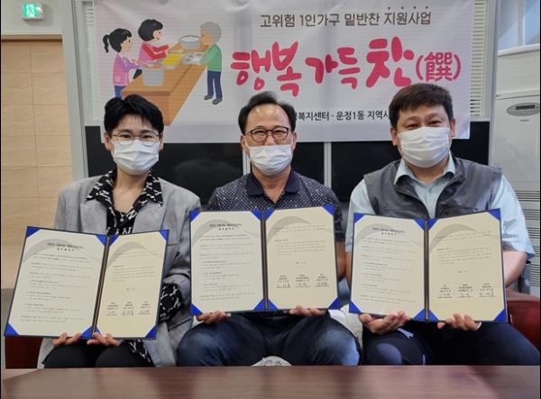 파주시 운정1동과 지역사회보장협의체는 지난 9일 파주지역자활센터와 돌봄이웃 밑반찬 지원사업 ‘행복가득찬(饌)’ 업무 협약을 맺었다.
