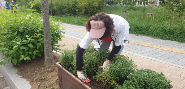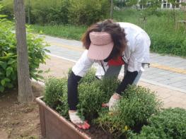 이날 행사는 가을을 맞아 통장협의회와 공무원이 참여하여 행정복지센터 청사 인근에 배치된 가로화분에 약 620여 본을 식재했다.