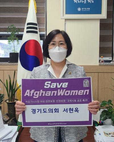 서현옥 경기도의원(더불어민주당, 평택5)이 아프가니스탄 여성의 안전보장과 인권보호를 위한 국제사회의 공조를 촉구하는 ‘세이브 아프간 위민(Save Afghan Women)’ 챌린지에 동참하였다.
