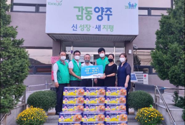 양주시 양주1동은 지난 9일 직장·공장 새마을운동 양주시협의회(회장 오수영)에서 민족고유의 명철 추석을 맞아, 라면 40박스를 전달했다고 밝혔다.