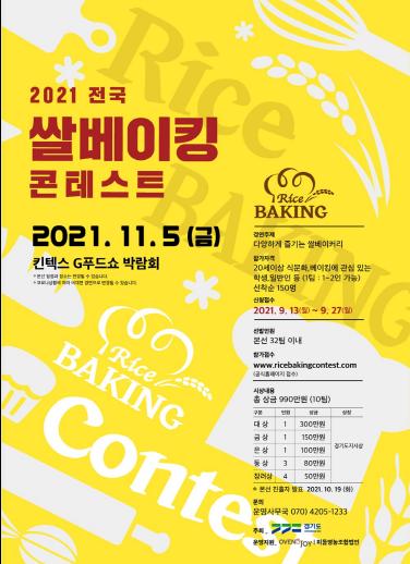 경기도는 오는 11월 열리는 ‘2021 전국 쌀 베이킹 콘테스트’ 참가자를 13일부터 27일까지 모집한다.