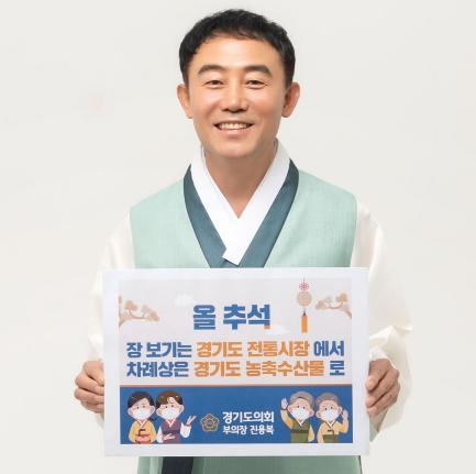 농정해양위원회 소속인 진 부의장은 지난 10일 자신의 SNS에 ‘올 추석 장보기는 경기도 전통시장에서, 차례상은 경기도 농축수산물로’라는 문구가 적힌 손팻말을 들고 찍은 사진을 게재했다.