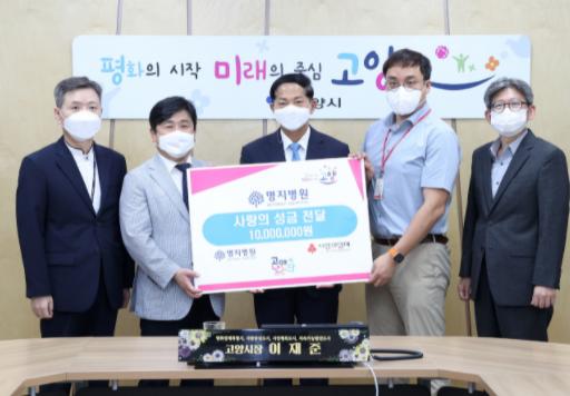 고양시는 지난 13일 명지병원(고양시 덕양구 화정동 소재)이 추석명절 소외계층 지원을 위한 성금 1천만원을 기부해 전달식을 개최했다.
