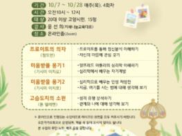 이번 강의는 성인(20세 이상)대상이며, 일정은 총 4차시로 10월 7일부터 10월 28일까지 매주 목요일에 진행된다.